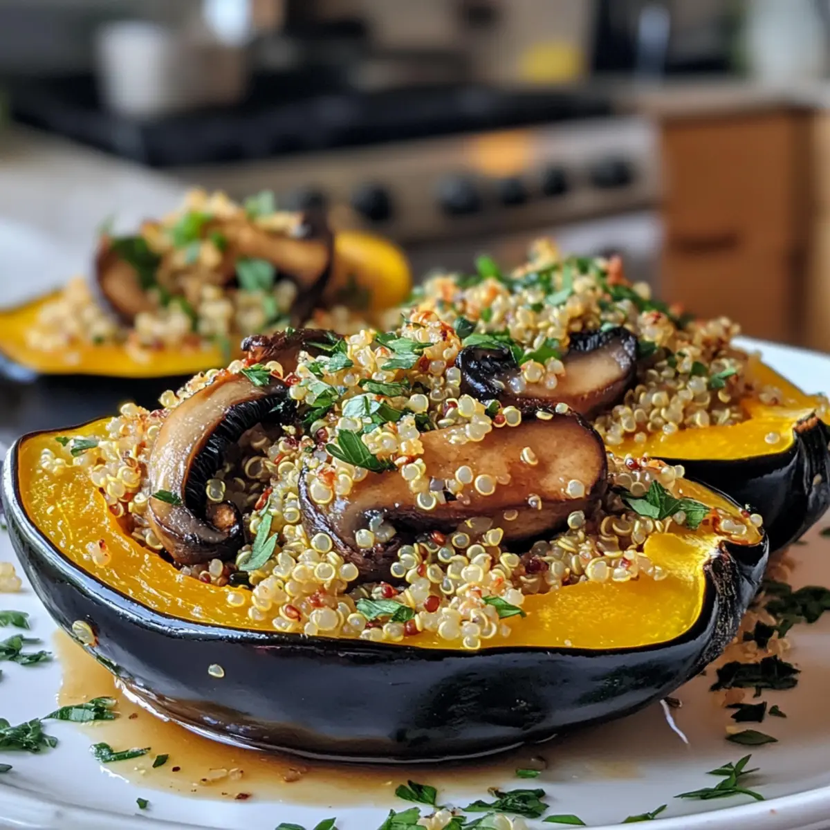 Irresistible Savory Mushroom and Quinoa Stuffed Acorn Squash Delight