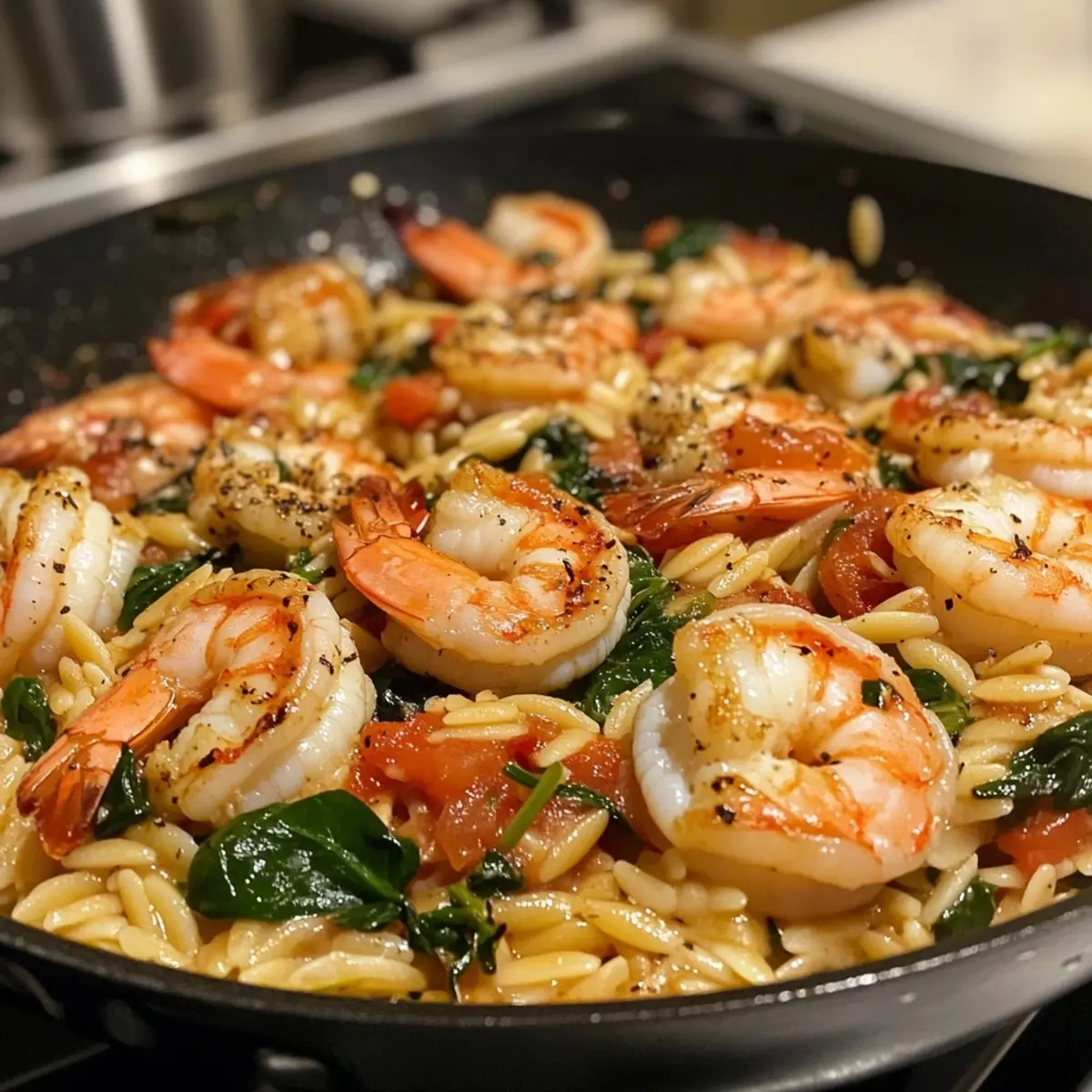 Savory Joy: Quick & Tasty 25-Minute Shrimp and Spinach Orzo Skillet
