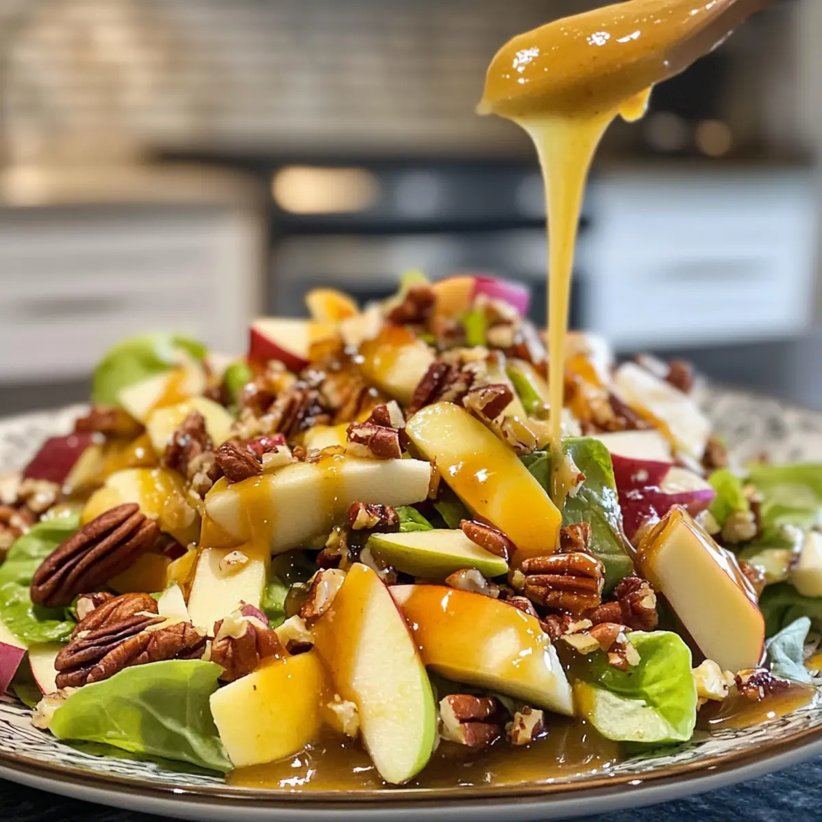 You can prepare the salad ingredients a few hours in advance. Wash and slice the apples and greens, and toast the pecans. Just keep everything in separate containers in the fridge. When you’re ready to serve, combine everything and drizzle the dressing on top for that fresh, crisp taste!